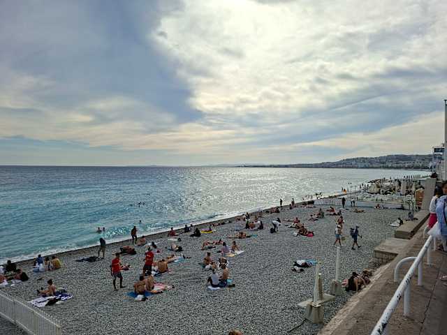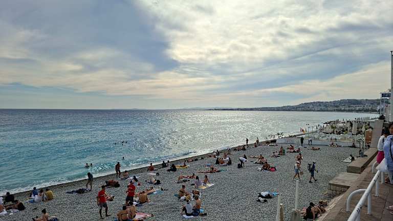 Der Strand in Nizza ist mit grossen runden Steinen bestückt. Somit kann man sich auch Abends an den Strand setzen ohne schmutzig oder sandig zu werden. Um zu baden ist der Strand in Ordnung, man sollte jedoch einen Sonnenschirm haben, da es keine Schattenplätzchen gibt. Es gibt ab und an abgesperrte Bereiche (Privatstrände) aber die Preise für Liegen und Sonnenschirme sind dort sehr hoch. Liegen sind ausserdem nicht so wichtig, auf den Steinen liegt man überraschenderweise sehr bequem. Der Strand ist sehr sauber, nicht überfüllt, aber gut besucht. Für Badeferien würde ich nicht dort hin, aber bei einer Städtereise noch schnell 3-4 Stunden an den Strand zu liegen ist sehr entspannend.