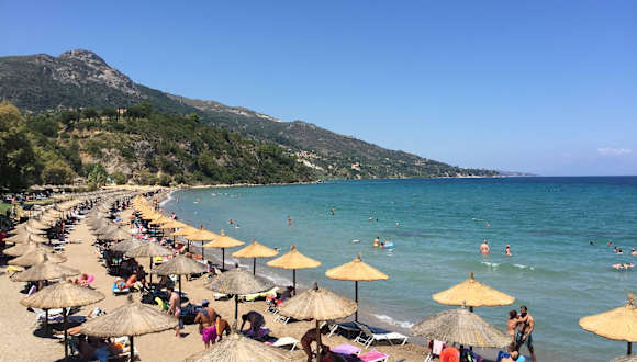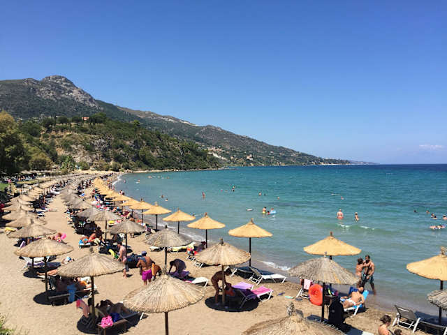 Diese Badebucht kann mit dem aufwarten, was man von einem Strand erwartet: viel Sand und kristallklares Wasser sowie eine malerische Kulisse durch im Meer liegende, grün bewachsende Felsen... Taverne, Strandbar und auch Liegen- und Sonnenschirmverleih..alles da! Aber man muss früh hierher kommen...denn ab Mittag sind alle Liegen belegt...