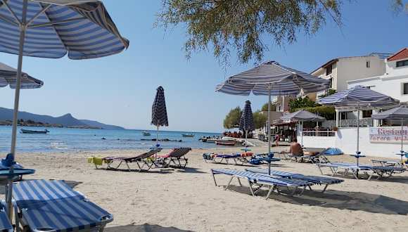 Ein toller Strand, gut geeignet für Familien mit Kindern. Sehr schmackhaftes Essen in den Tavernen. Man findet immer einen guten Platz , da noch nicht von zu vielen Touristen aufgesucht.