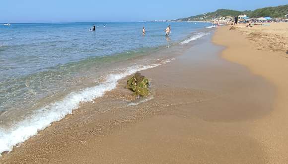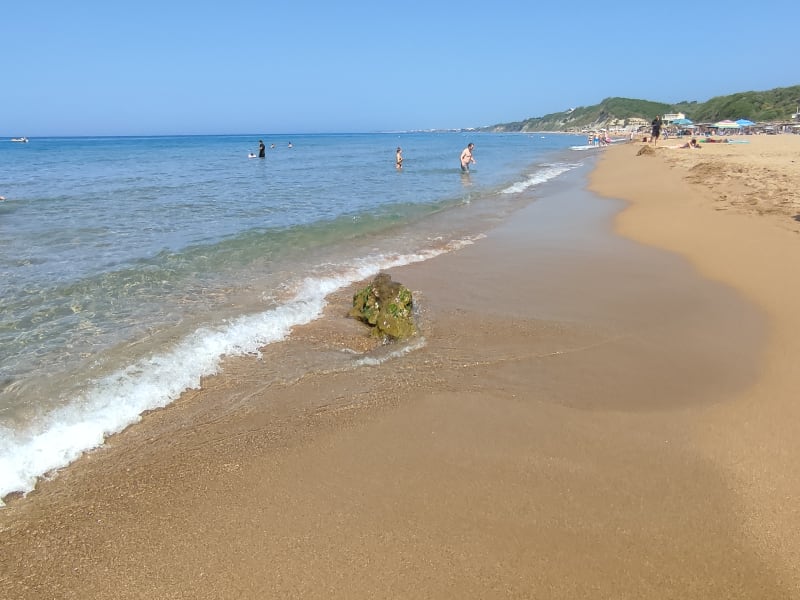 Dieser Strand hat sich den Beinamen „Golden Beach“ wirklich verdient. Der Sand hat hier eine einzigartige Farbe – eben fast goldig. Generell ist der Strand sehr sauber, weitläufig und gross, an manchen Stellen breiter, an manchen schmäler. Es gibt Stellen, wo Liegen vermietet werden(dort ist der Strand breit) und auch ruhige Stellen wo kein Verleih stadtfindet(dafür ist der Strand auch schmäler). Am Strand gibt es auch ein paar Tavernen. Wir haben aber keine ausprobiert, da wir nur auf der Durchreise waren. Hinterhalb vom Strand gibt es wunderschöne Standsteinklippen, mehr dazu auf den Fotos. Wenn man Korfu besucht, muss man diesen Strand unbedingt gesehen haben. Im September war er auch nicht überlaufen und man konnte in Ruhe das schöne Meer geniessen. Man kann der Strand auch relativ leicht finden: wenn man von Messonghi die Hauptstrasse Richung Lefkimmi nimmt einfach bei Marathias rechts abfahren. Soweit ich mich erinnere, ist der Strand schon auf der Hauptstrasse angeschrieben