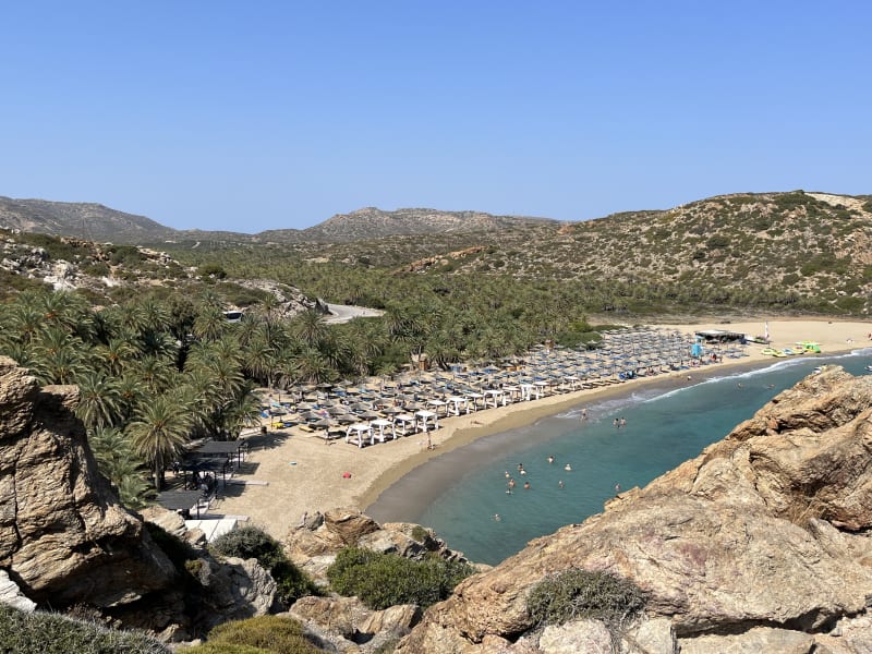 Der Palmenstrand von Vai kommt bei weitem nicht an den Strand von Preveli heran. Parken ist teurer als in Preveli. Preveli ist von der Optik(also die Natur der Strand und der Ausblick) schöner. Klimabezogen liegt Preveli günstiger. Der einzige Vorteil von Vai ist die vorhandene Gastronomie und Sanitär.
