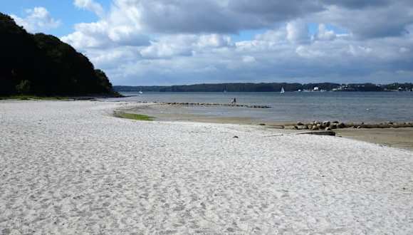 Das Strandbad Solitüde liegt am Rande des Flensburger Stadtteils Mürwik und bezaubert nicht nur mit seinen französischen Namenswurzeln („Einsamkeit“), sondern auch mit weißem Sand, glasklarem Wasser, Strandhafer, wilden Rosen, einer langgezogener Badebucht, der historischen Badebrücke und eben ganz viel Ostsee-Flair. Neben Strandbistro, DLRG-Station, Minigolf-Platz, Kinderspielplatz und Volleyballfeldern gibt es überdies viele Picknick- und Grillplätze, denn in den Sommermonaten hat man von hier einen Traumblick über die Flensburger Förde und die dänische Südseeküste. Vielleicht noch gut zu wissen: Die Buslinie 3 fährt aus der Flensburger Innenstadt ab Hafermarkt direkt zum Strandbad Solitüde und wer mit dem Hund anreist, findet westlich des Strandbades einen ausgewiesenen Uferabschnitt, an dem sich Vierbeiner nach Herzenslust austoben dürfen.