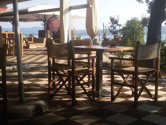 Nette Strandbar, Tische am Abend nicht mehr ganz sauber, aber auf Wunsch wird alles sauber gemacht
