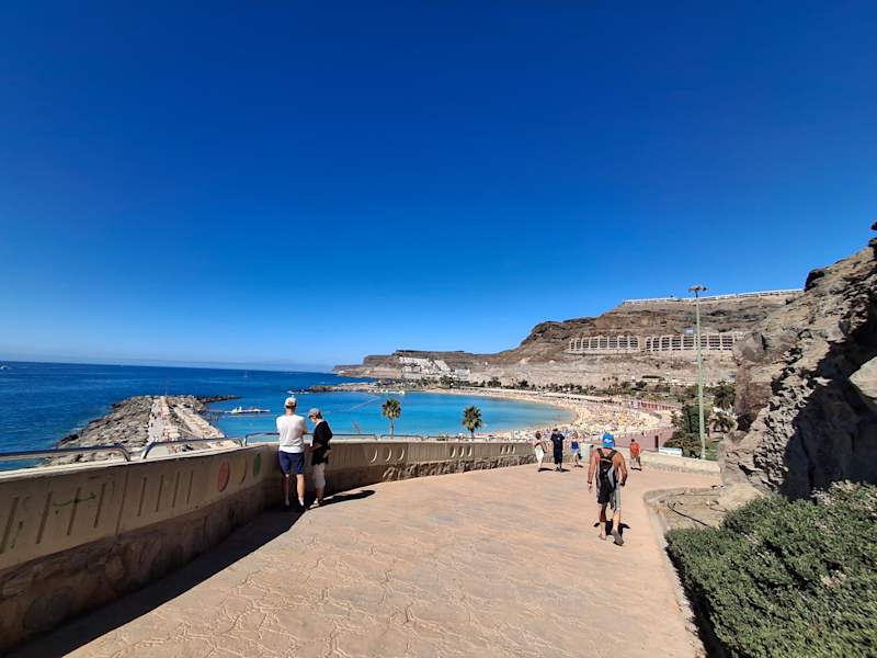 Schöne Strandpromenade von Maspalomas über Playa del Ingles bis nach Sankt Augustin, ca. 5km. Leider ist die Promende einmal durch Treppen im Zentrum Playa de Ingles unterbrochen. Im Bereich Sankt Augustin merkt man das alter an, da viele Steine stark verwittert sind.