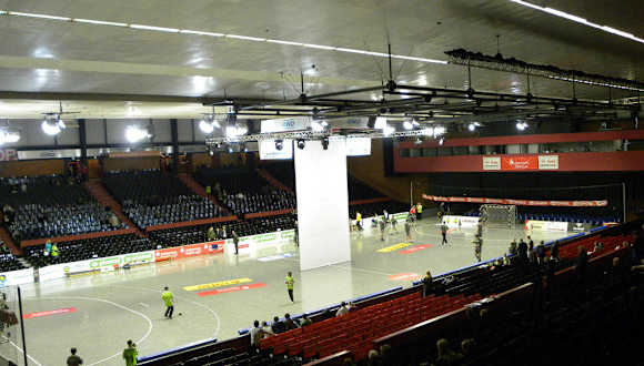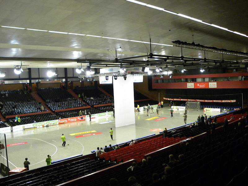 music & sports hall GmbH & Co. KG Ferdinand-Wilhelm-Fricke-Weg 8 30169 Hannover - Germany Tel.: +49 (0)511-353 953-0 (kein Ticketverkauf) Die frühere Stadionsporthalle heißt nun AWD Hall und liegt in unmittelbarer Nähe der AWD-Arena (ehemals Niedersachsenstadion). Vom Hauptbahnhof oder Kröpcke erreicht man diese mit den U-Bahn Linien U 3 oder U 7 Richtung Wettbergen bis Haltestelle Stadionbrücke. Vom Kröpcke mit der Buslinie 100 Richtung August Holweg Platz bis Haltestelle Sporthalle und mit der S 5 bis Bahnhof Linden / Fischerhof, dann mit der Buslinie 200 bis Haltestelle Sporthalle. Eine Eisrevue und die Internationale Musikparade haben wir uns schon in der Halle angesehen und besuchten nun die Halle zum Bundesliga Handballspiel TSV Hannover-Burgdorf gegen HSG Wetzlar. Da wir frühzeitig ankamen, bekamen wir einen Parkplatz in unmittelbarer Nähe der Halle. Sonst Parkmöglichkeiten auf dem Schützenplatz oder in der Stammestraße (kurz vor der Stadionbrücke). Die Halle zeichnet sich durch ihre vielseitige Verwendbarkeit aus und hat ein Fassungsvermögen je nach Veranstaltung von 4.540 Personen bis 5.800 Personen. Das großzügige Foyer der AWD-Hall ist mit vier großen Verkaufstresen ausgestattet. In den Seitengängen sind Besuchergarderoben fest installiert. Sport- und Firmenveranstaltungen, Eisrevues, Konzerte, Musicals und Tanzshows aber auch Auftritte bekannter Künstler werden hier durchgeführt. Wir saßen im Block G und hatten eine ausgezeichnete Sicht auf das Spielfeld.