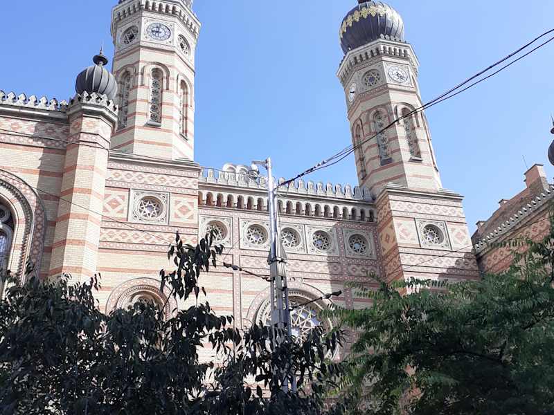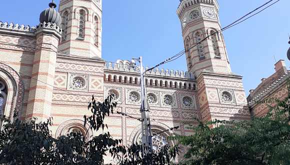 Mit fast 3000 Sitzplätzen ist die Große Synagoge in Budapest das größte jüdische Gebetshaus in Europa. Die Synagoge mit der auffallenden Architektur wurde Mitte des 19. Jahrhunderts für die jüdische Gemeinde in Pest errichtet. Juden lebten in Buda seit dem 11. Jahrhundert, in Pest seit dem 15. Jahrhundert. Im 19. Jahrhundert wuchs sie so stark an, dass der Bau einer neuen Synagoge in Angriff genommen wurde. Der „maurischen“ Stil ist von der Alhambra in Granada, aber auch von der babylonischen und assyrischen sowie der islamischen Architektur Ägyptens und der Türkei beeinflusst und soll dem antiken salomonischen Tempel ähnlich sein.