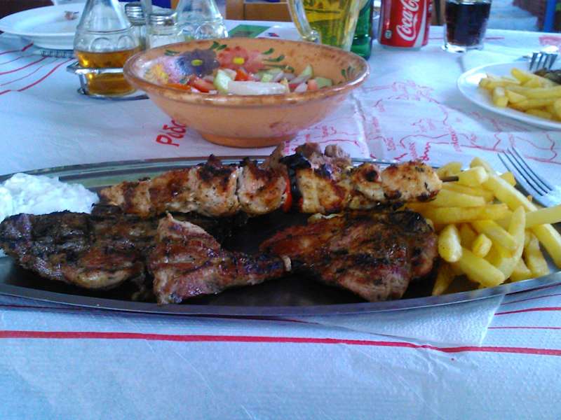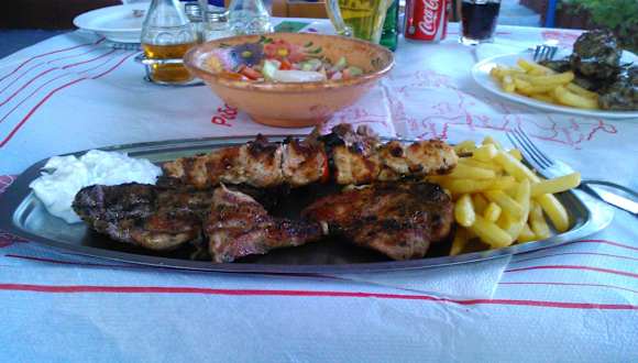 Bei Georgios und Georgina gibt es immer Sonntags griechische Spezialitäten frisch aus dem Backofen wie: gebackenes Zicklein, gebackene Bohnen, Bauernbrot, Kichererbsen, Makkaroniauflauf(Pastitio), Moussaka alles ganz lecker.