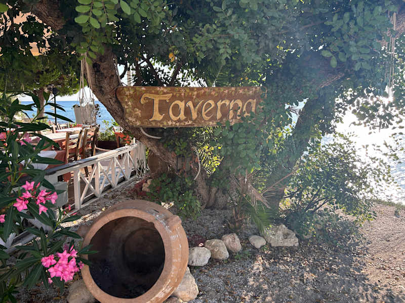 Sehr süße Taverne mit traumhaften Blick auf das Meer und den Strand! Urlaubsfeeling pur! Gespeist haben wir hier allerdings nicht. Jedoch bei Wein und Longdrink den Alltag vergessen und dem Meeresrauschen gelauscht.