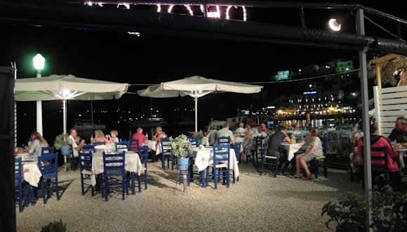 Abseits vom Pandeli Rummel noch eine originale TAVERNA direkt am Wasser des Pandeli Hafens LAGE - Gegenüber vom CASTELLO Hotel/Restaur. kpl. Auswahl griech. Gerichte & Preise angenehm