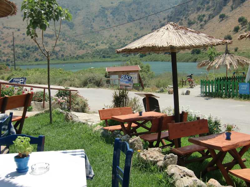 Marko hat mit seiner Familie mit viel Liebe zum Detail eine schöne Taverne eröffnet. Es gibt leckeres griech. Essen, diverse Vorspeisen und kretischen Bergtee, den findet man nicht überall. Eigenes Olivenöl und leckeren Thymian-Honig kann man auch erwerben. Die Lage ist herrlich mit Blick auf den See.