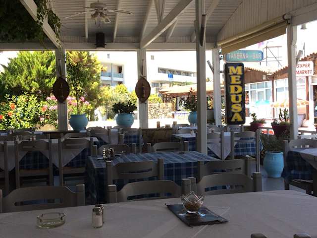 Die Taverne Medusa ist in unmittelbarer Nähe zum Island Hotel. Die Mama kocht und das vorzüglich! Sehr moderate Preise, nett, sehr sauber, einfach gemütlich, ob zum Lunch oder zum Dinner. Wirklich sehr empfehlenswert!!