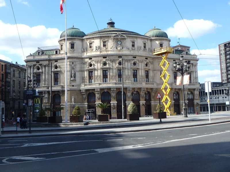 Das "Teatro Arriaga (baskisch: Arriaga Antzokia)" steht am gleichnamigen Platz direkt am Ostufer des Nervión nahe der Altstadt von Bilbao. Es ist benannt nach Juan Crisóstomo de Arriaga, der zu seiner Zeit als "spanischer Mozart" bekannt war. Das nach den Plänen des Architekten Joaquín Rucoba im neobarocken Stil errichtete Theater wurde am 31.05.1890 eröffnet. Als Vorbild diente die Pariser Oper. Wie andere Gebäude in der Altstadt von Bilbao wurde es bei den Überschwemmungen von 1983 stark beschädigt und anschließend umfassend restauriert. Heute zeigt das etwa 1.500 Besucher fassende Arriaga Theater-, Ballett-, Opernprogramme und Konzerte. Das Bauwerk ist als historisches Denkmal unter Schutz gestellt. Programm, Termine und Eintrittspreise Homepage: https://www.teatroarriaga.eus/