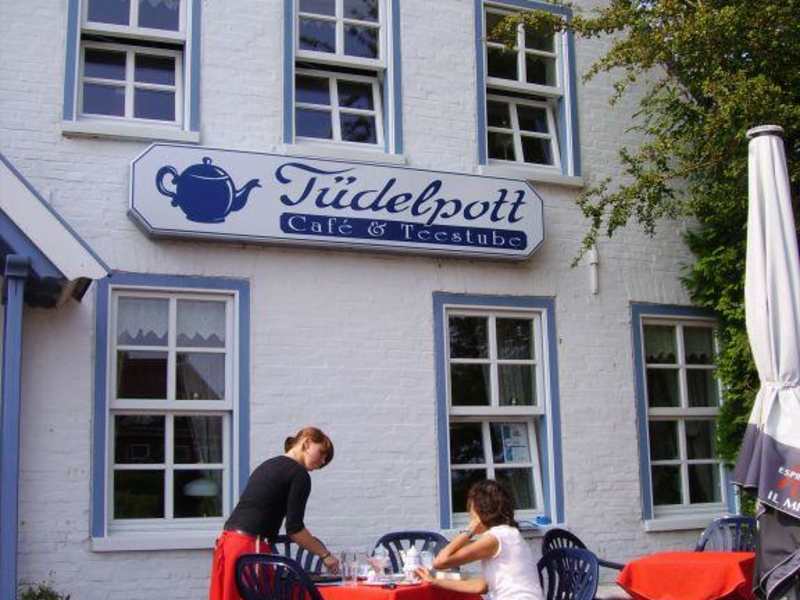 Ein wunderschönes altes Käpitänshaus mit Wintergarten und Aussenterrassen an der Uferpromenade der Harle gelegen. Dazu gehörig, ein sehr gepflegter Minigolfplatz und eine Bootsanlage mit Tretbooten, Elektrobooten, Ruderbooten etc. Die Tee- und Cafestube ist liebevoll eingerichtet. Die Toilettenanlagen sind sauber und gepflegt. Wohlfühlen ist hier Programm. Die sensationellen Torten und Kuchen werden von der Chefin täglich selbst hergestellt. Dazu kann man aus unzähligen tollen Teesorten und sehr guten Kaffeesorten wählen. Wer Herzhaftes liebt ist hier auch nicht verkehrt. Waffeln und Flammkuchen sind wie auch die Eiskonditor Eissorten hervorragend. Hier herrscht ein sehr freundlicher Service, egal wann man kam. Preis / Leistung sind hier angemessen. Man fühlt sich immer Willkommen. "Tüdelpott" ist ein MUSS! Wir kommen wieder.