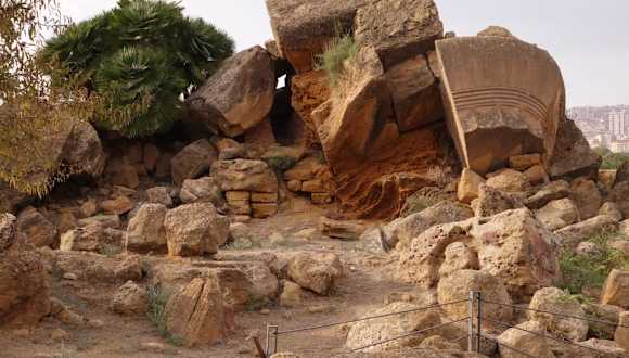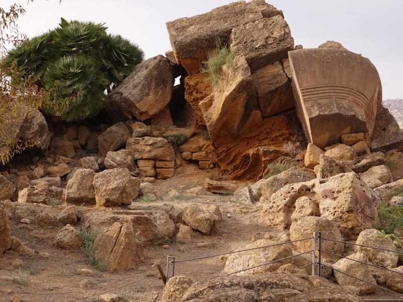 Im 5. Jh. vor Chr. erbaute man diesen gewaltigen Tempel. Man feierte den Sieg über die Karthager. Aber Ende des 5. Jh. siegten die Karthager bei einem neuen Feldzug über Agrigent. Die siegreichen Karthager zerstörten dann erklärter Maßen diesen Tempel fast vollständig. Ende des 18.Jh. war dieser Tempel nur noch ein Steinbruch, denn man benötigte diese Steine für öffentliche Bauten in Agrigent. Heute gibt es dort allerdings auch nur wenig Erbautes zu sehen.