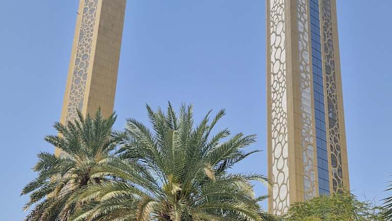"The Frame" ist ein architektonisches Meisterwerk in Dubai, das aus Stahl und Glas gebaut wurde. Es ist ein 150 Meter hoher Turm, der eine einzigartige Aussichtsplattform bietet, von der aus man die Skyline von Dubai und die umliegende Landschaft bewundern kann. Das Design von "The Frame" ist beeindruckend und einzigartig. Es besteht aus zwei Türmen, die durch eine Brücke in der Mitte verbunden sind. Die Aussichtsplattform auf der Brücke bietet einen atemberaubenden Blick auf die Stadt und das Meer. Das Gebäude ist auch ein Museum, das die Geschichte von Dubai und seine Entwicklung in den letzten Jahren zeigt. "The Frame" ist ein beliebtes Ziel für Touristen und Einheimische gleichermaßen und zieht jedes Jahr Tausende von Besuchern an. Der Eintrittspreis für "The Frame" ist moderat und bietet ein tolles Preis-Leistungs-Verhältnis für die Besucher. Das Gebäude ist auch ein Symbol für Dubais Engagement für Innovation und Fortschritt in der Architektur. Die Beleuchtung von "The Frame" bei Nacht ist spektakulär und verleiht dem Gebäude eine besondere Atmosphäre. Insgesamt ist "The Frame" ein beeindruckendes Beispiel für moderne Architektur und ein Muss für jeden Besucher von Dubai.