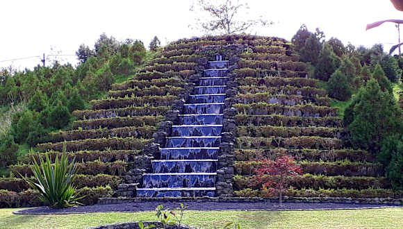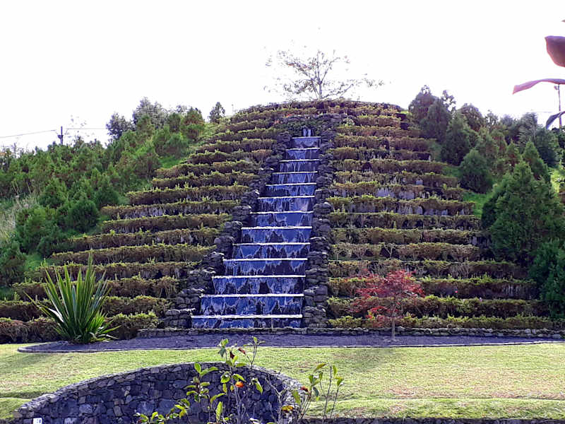 Die Poca da Dona Beija (in manchen Reiseführern wird es auch Paradise Pool genannt) ist eine Thermalquelle in Furnas, in der man baden kann. Die Hinweisschilder in Furnas sind ein wenig irreführend und wir brauchten eine Weile, bis wir sie endlich fanden (am Schluss ist ein Verkehrszeichen für Sackgasse - genau dort ist der Parkplatz). Der Eintritt kostet 3 Euro. Es gibt Umkleiden und Duschen. Mehrere Badepools sind entlang des Flusslaufes eingebaut worden. Dort kann man in warmen Wasser entspannen. Am Flusslauf sind auch viele Pflanzen und der kupferfarbene Boden bildet mit dem Grün der Pflanzen einen tollen Kontrast. Trotz teils diesigem Wetter war die Anlage gut besucht, aber nachdem es mehrere Pools gibt, fanden wir doch reichlich Platz in den Becken.