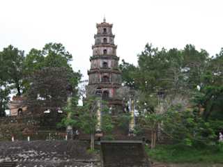 Die Thien-Mu-Pagode liegt am Nordufer des Parfümflusses und ist ein buddhistisches Kloster. Durch den siebenstöckigen Turm ist sie die höchste Pagode in ganz Vietnam. Errichtet wurde sie 1601 von Nguyen Hoàng (Fürstengeschlecht Nguyen). Laut Legende wurde eines Nachts auf dem Hügel eine alte Frau in einem roten Kleid entdeckt, die aussagte, dass dieser Ort einer Gottheit gehören würde. Im Namen dieser Gottheit verlangte sie, dass an dieser Stelle eine Pagode errichtet werden müsse und entschwand dann in den Wolken. Seither trägt die Pagode den Namen: "Die Pagode der Himmelsgöttin". Die schöne Gartenanlage, lohnt den Aufstieg (Treppen). Die Pagode wird noch immer von einigen wenigen Mönchen bewohnt, welche sich durch Touristen aber nicht gestört fühlen. Im Gegenteil, sie zeigen gerne wie sie leben und lassen einen an ihrem Alltag teil haben.