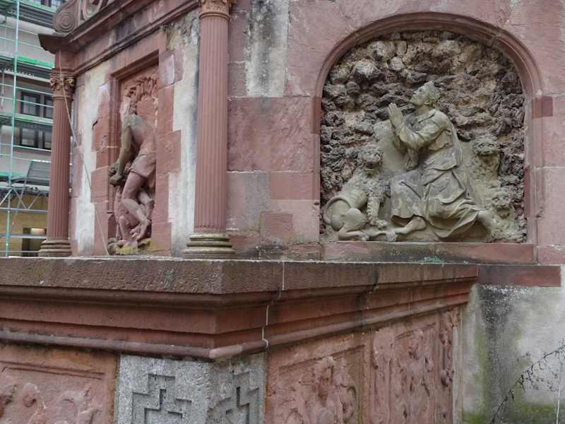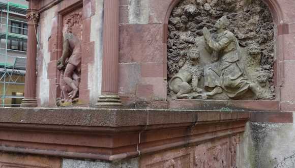 In weitem Umkreis wohl einmalig ist der „Tiefe Brunnen“ auf der Festung Marienberg. Um das Jahr 1200 wurde der Brunnen in Handarbeit errichtet. Zu Beginn im Burghof nur 2 Meter breit erweitert er sich bis zur Sohle nach 102 Metern auf 4 Meter. Bis zu 75 m ist er gemauert und danach aus dem Fels gehauen. Der Brunnen war nötig um im Falle einer Belagerung nicht von Wasserlieferungen aus dem Umland abhängig zu sein. Acht bis zehn Jahre dauerten die Arbeiten bis zur Vollendung. 400 Jahre später, um 1600, wurde ein Brunnenhaus, auch Brunnentempel genannt, von Julius Echter in Auftrag gegeben um das Wasser vor Verunreinigung zu schützen. Der Brunnentempel ist ein achteckiger Bau mit Koöpfen von Fabeltieren als Wasserspeier versehen. Auf dem Dach ist die Bonzefigur der „Fortuna“ zusehen.