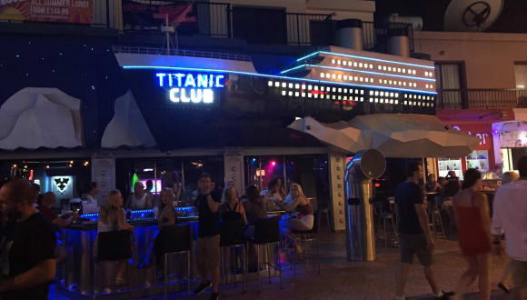 Das Titanic liegt mitten in der Meile direkt neben dem Castle-Club. Es besteht aus einer Open-Air-Bar auf der Meile und im gegen die Meile offenen Club. Die Bar ist ein guter Ort um die Nacht zu starten. Man sitzt praktisch auf der Meile und es ist super um die Leute zu beobachten. Wichtig: Sich immer von den Flyerjungs und -Mädels in die Bar bringen lassen, dann kriegt man 2 für 1. Eintritt zahlt man keinen wie bei all den Lokalitäten die um 2 Uhr nachts schliessen. Getränkepreise sind Ortsüblich