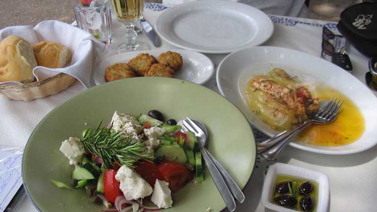 Das To Pefko (Griech. Zur Tanne) liegt zwar direkt an der Straße nach Fiscardo, Ortsausgang Antipata, aber dennoch habe ich den Straßenverkehr nicht als störend empfunden. Schnuckelig die gehäkelten Gardinen mit dem Namen des Lokals, der urige Tante-Emma-Laden, ein Ort zum Wohlfühlen! Das Essen mundete uns stets ausgezeichnet. Für griechische Verhältnisse ungewöhnlich stilvoll angerichtetes Essen und Getränke. Wir probierten hier z. B. auch die Kefalonische Fleischpastete (Kreatópita), eine Spezialität der Insel. Die Speisekarte wechselt jährlich, wie uns die überaus zuvorkommende Bedienung erklärte, daher macht es keinen Sinn, etwas zu empfehlen. Preise Mai 2009: Couvert 1,50 EUR p.P, Griechischer Salat 6,50 EUR, Zucchinibällchen 4,50 EUR, Stifado vom Kaninchen 9,50 EUR, Souflaki 9,- EUR, Kreatópita 9,50 EUR, Liter Hauswein weiß 6,50 EUR, Liter Hauswein rot 7,- EUR, Soda 2,- EUR Preis-/Leistungsverhältnis absolut angemessen, sehr freundliche Bedienung! Direkt hinter dem Lokal geht der Weg zur Dafnoudibucht.