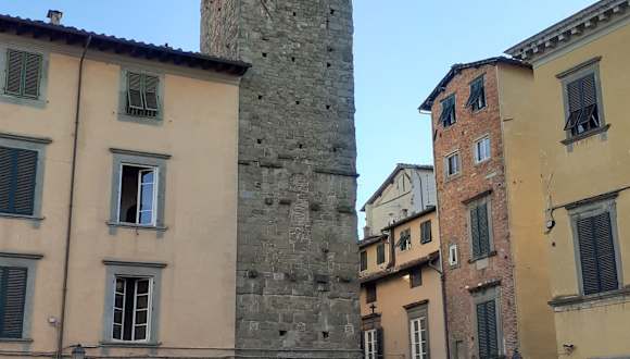 Der aus dem 12. Jahrhundert stammende Turm ist einer der zahlreichen Türme, die es im Mittelalter an fast jeder Ecke und Kreuzung gab und die auch heute noch das Stadtbild prägen. Die in der Regel nach den einstigen Besitzern benannten Türme dienten der Verteidigung und waren von den angrenzenden Palazzi zugänglich. Die zum Teil intakt gebliebenen Türme tragen dazu bei, das mittelalterliche Flair der Stadt zu erhalten.