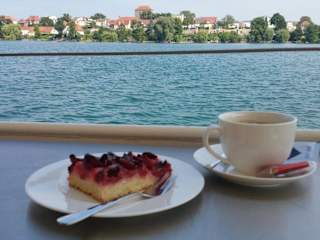 Erleben Sie ein unverwechselbares Erlebnis, wenn Sie mit unserem Schiff „Annemarie" auf dem wunderschönen Straussee vor den Toren Berlins die Seele baumeln lassen. Das Schiff ist elektrisch betrieben und somit sehr leise und umweltfreundlich, es besitzt 40 Sitzplätze, eine kleine Küche, in der wir für Sie Speisen und Getränke zu jeder Fahrt zubereiten können und ein WC. Während der Saison bieten wir neben unseren Ausflugsfahrten auch Brunch-, Mittags-, Kaffee-, Räucherfisch- und Mondscheinfahrten an. Die jeweiligen Termine sind auf unserer Website in der Rubrik "Veranstaltungen" zu finden. Des weiteren bieten wir unseren Gästen auch die Möglichkeit, das gesamte Schiff für Geburtstage, Hochzeiten, Firmen- und Vereinsfeiern o.ä. zu chartern. Der Schiffsanleger befindet sich hinter dem Fichteplatz in Strausberg, der direkt am See liegt. Dort finden Sie genügend Parkmöglichkeiten vor. Für die Anreise per S-Bahn nutzen Sie die S5 bis Strausberg Stadt und laufen bequem in Richtung Zentrum und See. Sie erreichen uns nach einem ca. 5 Minuten dauernden Fußweg.