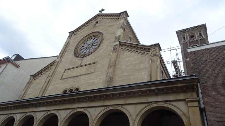 Die ursprünglich zwischen 1857 und 1860 auf Veranlassung von König Friedrich Wilhelm IX. erbaute Trinitatiskirche findet man in der Straße Filzengraben 4, ca. 300 Meter südlich vom Heumarkt und ca. 400 Meter nordwestlich vom Schokoladenmuseum. Auch die Trinitatiskirche wurde im Zweiten Weltkrieg zerstört, der Wiederaufbau erfolgte nach den alten Bauplänen. Leider war die Kirche bei unserem Besuch im Juli 2025 verschlossen und wir konnten sie nur von außen anschauen.