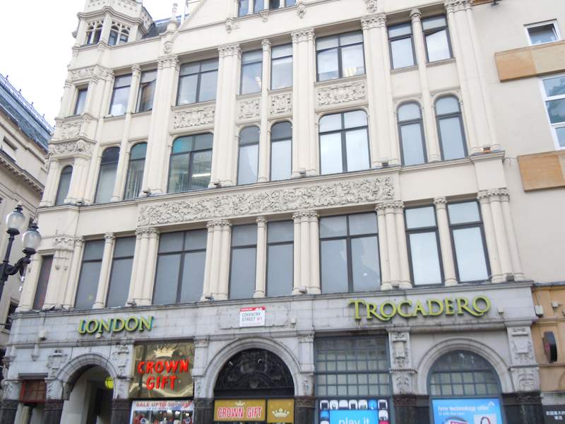 Beim Trocadero handelt es sich um ein riesiges Einkaufs- und Vergnügungszentrum am Piccadilly Circus, das auf jeden Fall einen Besuch wert ist, wenn man gerne spielt und shoppt. In den unteren Stockwerken finden sich Shops und Restaurants, in den oberen befinden sich Spielautomaten, Glücksspiele (ein Bereich ist erst ab 18 Jahren zugänglich - Passkontrolle!), Pool-Billard, und vieles mehr - alle möglichen Spiele lassen sich hier auf zwei Etagen spielen! Auch ein Bowling-Center und meines Wissens auch ein Kino sind in dem großen Haus mit den türkisen Bannern untergebracht. Auch für das leibliche Wohl ist mit Bars und Restaurants gesorgt. Für Jung und Alt ein schöner Nachmittag in einem futuristisch eingerichteten Zentrum!!