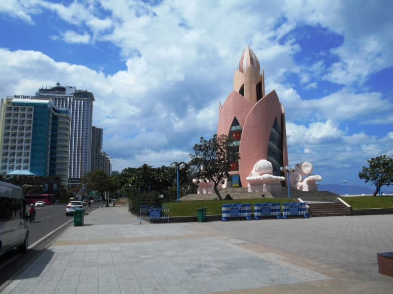 Der kuriose Turm an der Promenade zwischen der Straße Đường Trần Phú und dem Strand trägt den Namen „Thap Tram Huong“, was übersetzt wohl soviel heißt wie „Weihrauchturm“, hat aber die Form einer Lotusblüte. Leider konnten wir ihn nur von außen besichtigen, das Informationszentrum der Tourismusbehörde das sich im Turm befinden soll, war geschlossen.