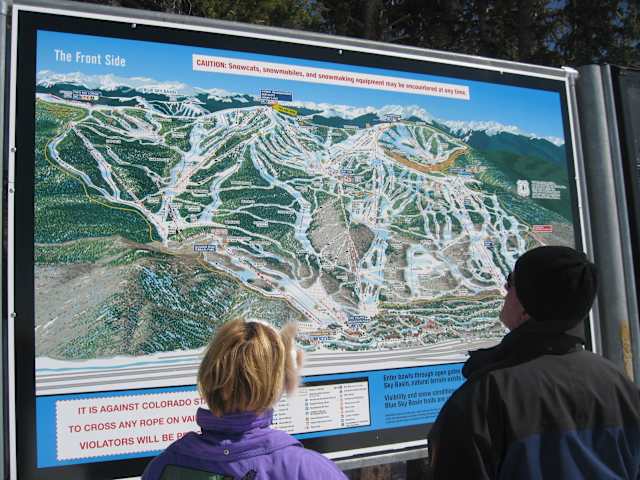 34 Lifte, 193 Pisten aller Schwierigkeitsgrade (überwiegend mittelschwer – schwer) von 2450 – 3527m ü.N.N.. Das größte Skigebiet der USA mit einem weitläufigen Terrain (2140 ha). Wohl das Skigebiet in den USA. Der Ort überzeugt mich leider nicht. Pseudo- Tiroler Atmosphäre und zu viel Schickeria (oder solche die es sein wollen). Zudem hat Vail ein Parkplatzproblem. Die meisten Parkplätze sind kostenpflichtig und zwar nicht zu knapp (25$/ Tag) aber nicht in der ersten Reihe. Es gibt nur wenige kostenfreie Parkplätze. Das Skigebiet hingegen ist schon etwas besonderes (vergleichbares kenne ich nur aus der Dolimiti Superski- Region in Südtirol): riesige Bowls und viele Abfahrten verteilt über ein unübersehbares Terrain. Leider liegen die Backbowls an Südhängen, was manchmal den Schnee leider ein wenig sulzig werden lässt. Front Side Wir beginnen den Skitag an der Vail Mountain Village Plaza, nur wenige Schritte vom Parkhaus entfernt. Wer will kann sich entweder bei dem kurzen Fußweg durch die Fußgängerzone bei Starbucks einen Kaffee mitnehmen, oder direkt am Lift an dem kleinen Kaffeestand. Von hier geht es mit dem Vista-Bahn-Express-Lift hoch, an dessen Ende man die Mid-Vail-Lodge erreicht. Direkt gegenüber gehen 2 Lifte ab. Wir wenden uns zunächst nach links und nehmen den Mountain-Top-Express-Lift. Mit ihm erreicht man den Gipfel auf dessen breitem Plateau rechst eine der bekannten Hütten, Henrys Hut steht. Cappucino und Expresso gibt’s nicht nur in dieser Hütte, sondern auch am Hang. Die beiden Abfahrten sind für Fortgeschrittene und Könner, während Anfänger mit Swingsville und Ramshorn besser bedient sind. Der Swingville verläuft auf einem Kamm. Könner (und wirklich nur Könner) sollten nach links auf die Weltcup-/WM- Abfahrtspiste Riva – Ridge abbiegen, insb. wenn diese präpariert ist. Die Abfahrt bietet neben einer traumhaften Aussicht auch traumhaftes Skivergnügen für Könner. Insb. in dem Bereich der sich Tourist- Trap nennt – laßt Euch von der Steilheit überraschen. Sie ist im übrigen auch die Lieblingsabfahrt von Lindsey Vonn die in Vail wohnt. Anfänger und leicht Fortgeschrittene haben auf dieser Abfahrt allerdings wirklich nichts zu suchen, das gefährdet denjenigen selbst und andere. Nach links gewandt kann man (über den Ziehweg „Timberline- Catwalk“) zum Northwoods – Express fahren. Hier kommen Könner und sehr gut Fortgeschrittene auf ihre Kosten. South Rim und First Step sind insb. im oberen Teil sehr steil, aber auch Northwoods hat es in sich. Nach unten hin läuft das Gelände in eine „Schüssel“ flacher aus. Der Northwoods-Express ist allerdings stark frequentiert, so daß man ggf. auch mit Wartezeiten rechnen muß. Fährt man den Timberline Catwalk weiter gelangt man zum Sourdough – Express-Lift. Die Abfahrten rund um diesen Lift sind klein aber fein. Nicht anspruchsvoll, aber schön zum Carven, insb. die Sourdough. Die Tin Pants ist für Anfänger gut geeignet. Von hier gelangt man auch wieder zurück in Richtung Vail. Über die schwierigen und (nicht gegroomten) Blue Ox oder Highline gelangt man zum Highline – Express-Lift, welcher schon aufgrund seiner exponierten Lage recht leer ist. Über den Ziehweg „Bridge-Walk“ wieder zur Village Mountain Plaza. Dabei befährt man den zum Schluß sehr breiten Ruders Run, wo u.a. die Slalom- Wettbewerbe der Weltmeisterschaften in Vail statt fanden. Der Rest der Slalompiste erreicht man über den Riva – Bahn – Express. Leider ist diese wunderbar präparierte Piste mit dem Namen „Golden-Peak-Race“ meistens gesperrt. Aber die daneben verlaufende Ruders Run ist auch traumhaft zum Carven, im unteren Teil erreicht man allerdings eine breite Fläche zw. dem Riva-Bahn- Express- Lift und dem Vista- Bahn- Express- Lift, welche mit zwei kleinen Liften erschlossen ist und die Anfängerzone bildet. D.h. hier ist es entsprechend voll und man muß eben Rücksicht nehmen. Wir kehren nun über den Vista- Bahn- Express- Lift zur Mid-Vail- Lodge zurück. Von der Mid-Vail-Lodge kann man über den Ziehweg „Lions-Way“ zum Avanti- Express-Lift fahren. Wer Lust hat, kann die hier bestehende Riesenslalom- Rennstrecke testen. Ferner kann man über den Ziehweg „Eagles-Nest“ den Game Creek Express erreichen, welcher in der Talsohle einer „Schüssel“ beginnt. Achtung ! Wenn dieser Lift nicht läuft, darf man die Eagles-Nest- Schüssel nicht ansteuern, da sie nur über den Lift verlassen werden kann !! Die Schüssel erreicht man auch von der Mid-Vail-Lodge über den Wildwood- Express-Lift. Hiermit erreicht man auch die Wildwood-Lodge auf dem Gipfel dieses Berges. Die Abfahrten ins Eagles Nest sind durchaus empfehlenswert, allerdings sollte man bedenken, daß die Abfahrten auf der Linken Seite des Lifts und die Showboat (direkt unter dem Lift) relativ stark der Sonne ausgesetzt sind, was der Schneequalität nicht immer gut tut. Über den den Ziehweg „Eagles-Nest“ erreicht man auch die Eagles Nest- Lodge mit dem Adventure Ridge. Hier steppt der Bär. Wer es ruhig mag und sollte hier nicht unbedingt hinkommen. Viele Skigruppe, Skischulen etc., welche von unten mit dert Eagle-Bahn-Gondel hochkommen. Dieser Bereich ist gänzlich unamerikanisch und erinnert mehr an die Skigebiete in Europa. Auch die ins Tal führenden Pisten Bwana, Simba oder Bron Free sind zwar breit aber entsprechend zerfahren. Hier lohnt es sich also eher morgens her zu kommen. Dies gilt zumal die Pisten nachmittags auch durch die Sonneneinstrahlung weich werden können. Back Bowls Über den Mountain Top- Express erreichen wir den Grad mit dem Buffalo Restaurant und dem Hauptquartier der Mountain Patrol. Vor uns liegt eine riesige Talschüssel (keine Angst der Pistenplan ist komplizierter als die Orientierung in Wirklichkeit). Direkt vor uns kommt der High-Noon-Lift aus der Schüssle hoch. Zu seiner rechten und linken winden sich insg. 9 schwarze Abfahrten runter in die Bowl. Buckelpistenliebhaber finden hier 
