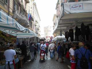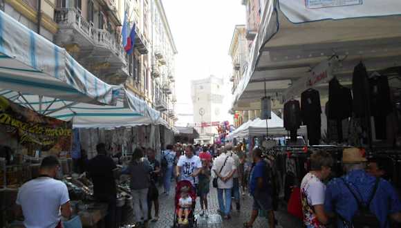 Beiderseits von Geschäften in Arkadengängen gesäumt ist die Via Pietro Paleocapa an jedem Tag eine belebte Einkaufsstraße. Sonntags wird die Straße dann für den Verkehr gesperrt und es breitet sich ein großer Markt aus mit einem breit gefächertem Angebot: Lebensmittel, Bekleidung und Schuhe, Heimtextilien und Haushaltswaren und allerlei Souvenirs, denn natürlich findet man hier auch viele Touristen von den Kreuzfahrtschiffen, die im Hafen anlegen.