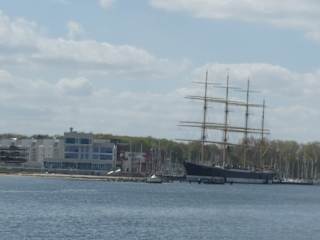 Im Passathafen liegt diese Viermastbark auf der Priewallseite. Das Schiff wurde 1911 von Blohm und Voss in HH gebaut. Dieser "Windjammer" hat eine lange Dienstgeschichte, denn zur Zeit sind es 120 Jahre her, seit ihrem Stapellauf. Sie erinnert diejenigen die sich für die Zeit der Großsegler interessieren. Kein Wunder daß sie als Wahrzeichen von Travemünde gehalten wird. In den 50er Jahren war sie als Frachtsegelschiff zwischen Europa und Südamerika in Dienst, als sie ausgemustert wurde, hat die Stadt Lübeck sie gekauft. Als Frachtsegelschulschiff hatte sie 25 bis 35 Mann als Stambesatzung, sowie zusätzlich 86 Kadetten. Seit 1960 ist es ein stationären Museumschif und Jugendherberge, seit dem Jahr 1978 steht sie unter Denkmalschutz.