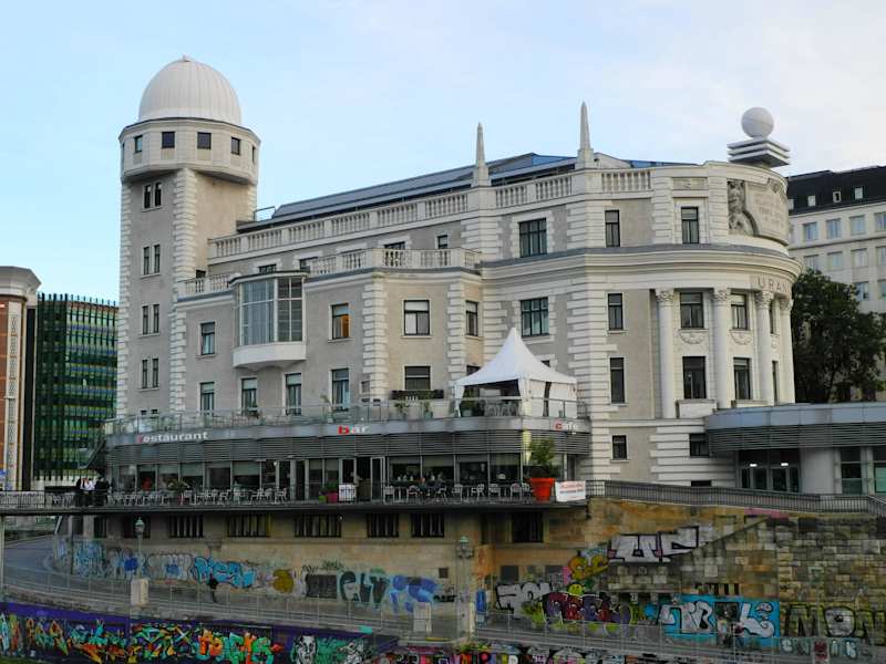 Das Gebäude am Julius Raab Platz ist ein herrlicher Jugendstilbau, errichtet unter Kaiser Franz Josef im Jahre 1910. Die Urania war als Volkshochschule damals vorbildlich, es gab in den Jahre 1913 bis 14 Dichterlesungen, von Thomas Mann, Hermann Hesse, und Arthur Schnitzler. Nach dem Anschluss Österreichs an das Deutsche Reich, waren die Vorträge mehr im völkischen Sinn. 1941 wurde die Sternwarte eingestellt, sie wurde schon 1910 in Betrieb genommen, als man mit dem Refraktor von Zeiss den Halleyschen Kometen sehen konnte. Daneben waren auch kleinere Teleskope tätig. Im Jahr 1944 wurde der Zeiss-Refraktor völlig zerstört. Jetzt ist dort ein Spiegelteleskop mit 600 mm Brennweite tätig. Als Volkshochschule versteht sich die Urania als Mittler für Wirtschaft, Multimedia, Kunst und Kultur mit den 28 Sprachen die dort gelehrt werden. Pro Semester werden dort rund 120 Vorträge abgehalten.