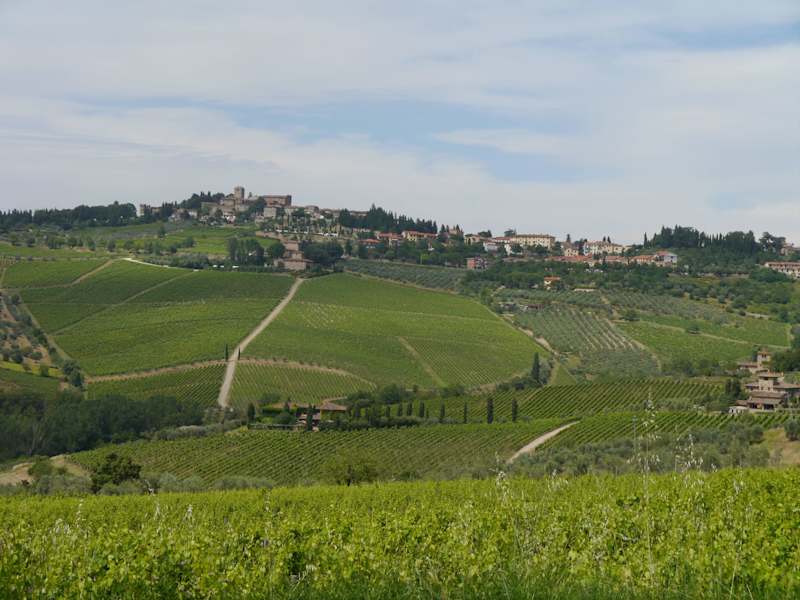 Von Radda im Chianti geht es in rund 4 bis 5 km hinauf - ein paar Kurven oder Serpentinen hoch - auf gut ausgebauter, aber enger Straße, nach Volpaia. Dort ist die Toskana am toskanischten oder das Chiantigebiet noch typischer. Gigantische Ausblicke, ein uriges kleines Dorf. Ein Weingut mit exzellenten Chiantiweinen und Olivenöl zum probieren und kaufen. Eine Osteria .... schickimicki, aber sehr gut. Ein Restaurant - Ausflugslokal - mit schöner großer schattiger Terrasse, das trotz Massenbetrieb einen flotten Service und preiswert-lecker Essen bietet. Dieser Ort hat mir im Chianti mit am besten gefallen. Von da aus kann man, wenn man gut zu Fuß ist und es nicht gerade 32 Grad hat wie bei unserem Besuch, auch schöne Wanderungen unternehmen.