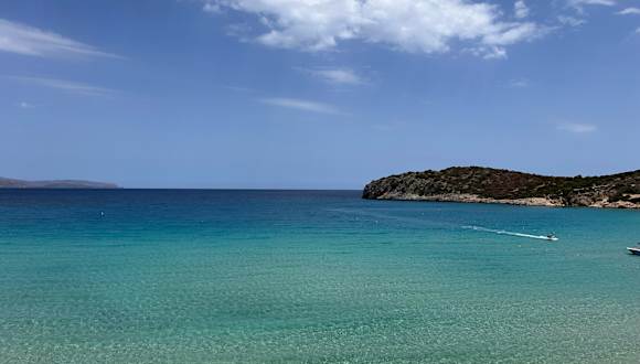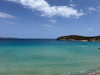 Dieser Strand liegt in einer sehr schönen Bucht in der Nähe von Agios Nikolaos. Weißer Sandstrand und ein tolles blaues Wasser. Sieht aus wie im Paradies.