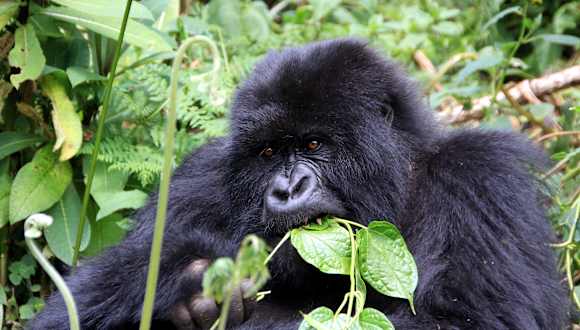 Im Dreiländereck Ruanda/Uganda/Demokratische Republik Kongo befindet sich der Parc National des Volcans. Dieser wurde in den vergangenen Jahren leider immer wieder verkleinert, wodurch der Lebensraum der letzten Berggorillas immer enger wird. Ausgangspunkt ist die Stadt Musanze/Ruhengeri, von dort fährt man auf bester Straße ~11 km bis zum Hauptquartier Kinigi. Um 7 Uhr ist hier Treffpunkt, dann werden maximal 8 Touristen in einer Gruppe eingeteilt. Ungefähr 7 Gorillafamilien (ändert sich, da die Tiere über die Landesgrenzen wandern) können besucht werden. Die größte ist die "Susa" mit ~40 Tieren. Sie ist am interessantesten, aber auch am schwierigsten zu erreichen. Mit dem eigenen Auto und Führer fährt man ~2 Stunden in Richtung Gisenyi. Kurz vor der Stadt biegt man auf eine schlechte Straße ein, an einem Kontrollpunkt ist die Fahrt zu Ende. Von dort geht es ~40 Minuten zu Fuß bis zum Beginn des Nationalparkes, von hier nochmals 2-3 Stunden bergauf zur "Susa-Familie". Der Eintrittspreis beträgt 750 USD und man ist eine Stunde bei den Tieren. Es bietet sich an, für 10 USD einen Träger fürs Tagesgepäck zu nehmen, es ist angenehmer zu laufen. Der Weg geht durch dichtes Gestrüpp, Brennnesseln, Dornen, ... weshalb Handschuhe, langärmlige Hemden und dickere Hosen von Vorteil sind. An die Gorillas kommt man bis auf wenige Meter ran, sie haben keinerlei Angst, fotografieren kann man bestens. Auch wenn die Tour nicht gerade billig ist, sie ist auf jeden Fall absolut lohnenswert!