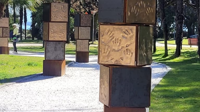 In Locarno angekommen hatten wir Zeit den Ort besser kennenzulernen. Was wir entdeckten hat uns sehr gut gefallen - der Walk of Fame - in Lugano in einer schönen Parkanlage (den Rusca Gärten). Sie liegt im Herzen von Locarno und nur eine kurze Entfernung von der Piazza Grande entfernt. Hier in Locarno findet das Musikfestival " Moon & Stars" statt und die berühmten Musiker haben dann hier ihre Handabdrücke hinterlassen. Der Würfel hat eine Größe von 50x50x50 Zentimeter, der Beginn vom Walk of Fame war im Jahre 2008, doch die Zahl der Künstler und deren Abdrücke wurde immer mehr. Jetzt wurden Türme mit den Würfeln gemacht um sie alle unterzubringen. Der Walk of Fame in Locarno ist frei zugänglich und kostenlos - wir fanden es eine super Idee !!!