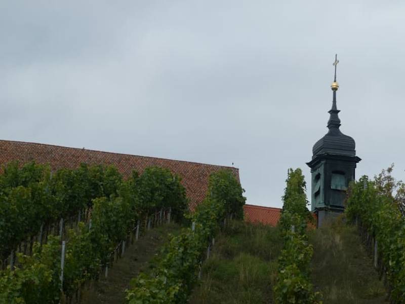 Die alte Wallfahrtskirche zwischen den Weinreben