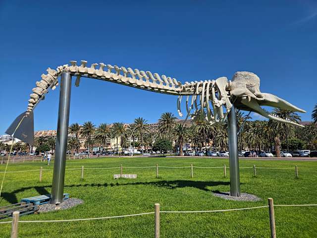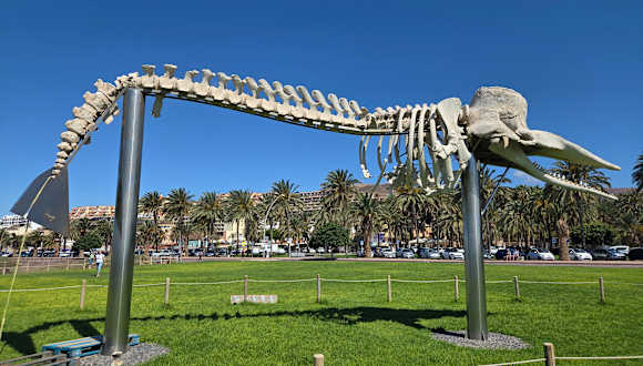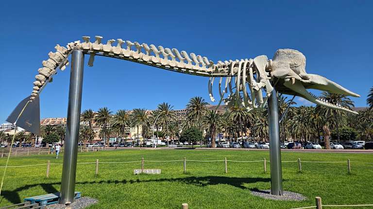 Sehenswertes Walskelett an der Strandpromenade von Jandia. Da wird einem die Grösse dieses Meeresbewohners erst richtig bewusst.