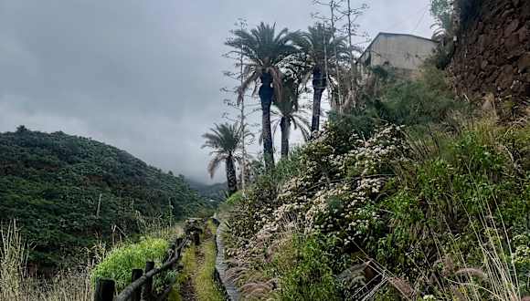Rundwanderweg bei dem sich einige Rasten lohnen. Sehr reizvoll durch Pinienwald, entlang des Wasserkanals durch Tunnel und auf dem Rückweg durch den Barranco bis zum Ausgangsort.
