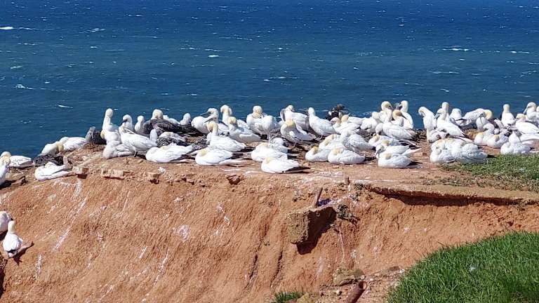 Bedingt durch die Größe der Insel sind einer Wanderung auf Helgoland von Natur aus Grenzen gesetzt – aber trotzdem ist eine Wanderung (oder Spaziergang) sehr empfehlenswert. Der Höhepunkt einer Helgolandwanderung sind zweifellos der Lummenfelsen und die Lange Anna, wo viele Seevögel ihre Brutplätze finden. Im Mai 2024 waren der Lummenfelsen und die Lange Anna von Basstölpeln und Trottellummen „übersät“ - ein einmaliges Erlebnis.