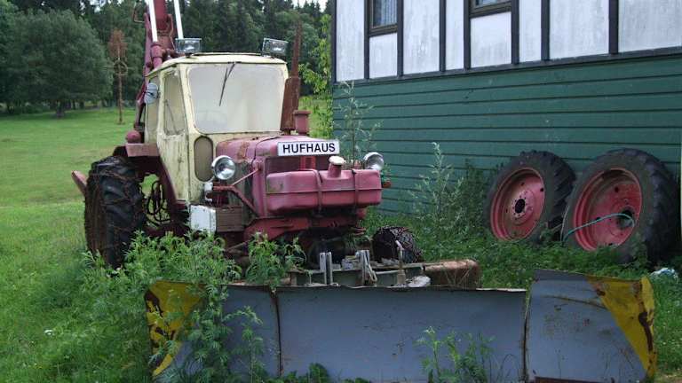 Eine schöne Tagestour von Ilfeld geht zum Hufhaus. Man wandert von der Ilfelder Ortsmitte in Richtung Bad, vorbei am geschlossenen Hotel Gänseschnabel, am Rabensteiner Stollen bis zur Bahnstation Netzkater. Dahinter rechts abbiegen und den Ausschilderungen folgen. Nach ca. 2 Stunden ist man am Ziel und mitten drin in einem Anwesen, dass noch sehr an vergangene Zeiten erinnert. Neben einem Restaurant und einem Hotel (siehe entsprechende Bewertungen) gibt es jede Menge maroden Charme in den Aussenanlagen. Ein paar Haustiere warten auf streichelnde Hände, Pferde warten auf Reiter, ein paar Spielgeräte warten auf Kinder und insgeamt wartet alles auf bessere Zeiten. Oder ist dieser Zustand Konzept? Die zugewucherten Reste einer ehemaligen Freilichtbühne, der alte Bagger, die verrosteten Kugeln auf den antiken Kegelbahnen haben schon wieder so etwas von einem Kunstobjekt. Fahnenstangen ohne Fahnen, Reste eines Appellplatzes? Es gibt hier oben sogar ein kleines Schwimmbad. Und das Wasser sieht relativ frisch aus! Man kann sich im Restaurant stärken und dann auf den Rückweg machen. Oder die Zeitmaschine fängt einen in einem der Hotelzimmer ein ... Na dann gute Nacht, alte DDR!