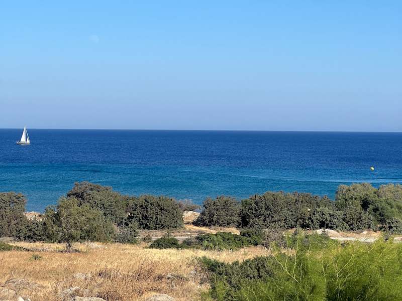Die Straße zwischen dem Mitsis Hotelkomplex und Kardamena ist super für einen Spaziergang geeignet. Wenn es nicht zu heiß ist und etwas windig, laufe ich hier gerne in der Vor- oder Nachsaison einmal am Vormittag und einmal am Nachmittag nach Kardamena an den Hafen und wieder zurück. Auf der Straße hat man immer einen tollen Meerblick. Erholung pur und man kann einfach gut vom Büroalltag abschalten.