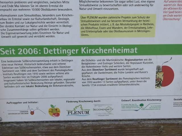 Der Wanderparkplatz liegt direkt an der B 28 bei Dettingen an der Erms. Er hat aber keine eigene Ausfahrt, sondern man muss die nach Dettingen nehmen und durch den Ort zum Parkplatz fahren. Von dort gehen verschiedene Wanderwege ab. Um nur zwei zu nennen, der Kirschenweg und der Weg Dettinger Kirschenheimat.