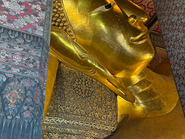 Wir hatten am Bangkok Sathorn Ferry Port ein kleines Touristenboot gemietet und eine Flussfahrt auf dem Chao Phraya gemacht, die uns u. a. auch zu diesem schönen Tempel führte. Vor allem der liegende Buddha ist beeindruckend in dieser Tempelanlage aus dem 16. Jahrhundert.