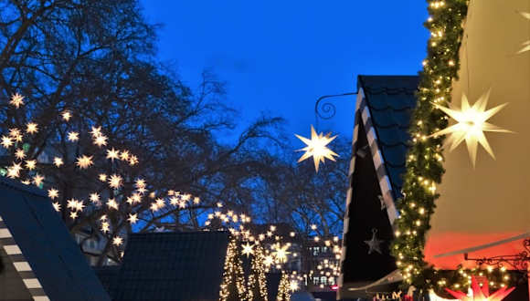 Bereits in der Woche vor dem ersten Advent eröffnet auf dem Kölner Neumarkt der beschauliche „Markt der Engel“. An mehr als 90 Buden gibt es eine bunte Mischung aus kulinarischen Spezialitäten und Kunsthandwerk, wobei schon auf den ersten Blick die vielen hundert Sterne ins Auge fallen, die in den Bäumen des Neumarktes leuchten. Allein drei verschiedene Krippen sind auf dem „Markt der Engel“ vertreten und dazwischen trifft man immer wieder auch auf ganz lebendige Engel, die von den Kindern begeistert umringt werden. Verglichen mit den Weihnachtsmärkten „Am Dom“ oder „Heimat der Heinzel“ kommt der „Markt der Engel“ sehr viel ruhiger daher – der Platz zum Flanieren ist großzügiger bemessen und an vielen Stellen kann man sich auch gemütlich niederlassen. Unschlagbar ist jedoch die Anbindung an den ÖPNV, denn der charmante Weihnachtsmarkt wird allein von 7 verschiedenen U- und Stadtbahnlinien angefahren – schneller und bequemer kommt man nicht zum Glühwein.