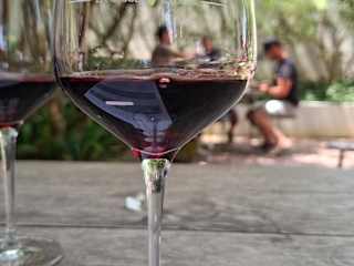 Von Kapstadt aus kann man mit dem Hop-On-Bus das Weingut gut erreichen. Auf dem Weingut sind unterschiedliche Weinproben möglich. Man sitzt drinnen oder draußen im Schatten von Bäumen. Und nach der Weinprobe kann man das benutzte Glas ohne zusätzliche Gebühr mitnehmen.