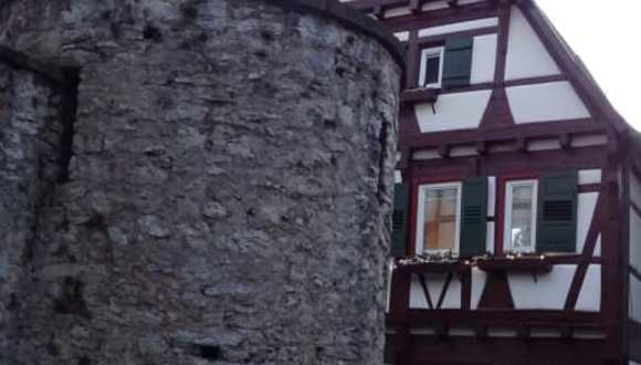 Das schöne Fachwerkhaus befindet sich direkt bei der Alten Kelter, gegenüber vom Pulverturm im Sträßchen "Vorstadt" zwischen äußerer und innerer Stadtbefestigung. Das Gebäude wurde um 1500 erbaut. Es handelt sich um ein typisches Wengerterhaus. Gut restauriertes, sehenswertes Fotomotiv.