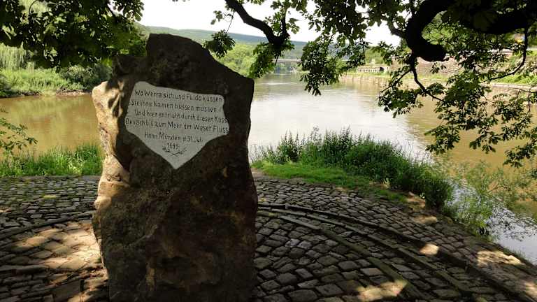 Die Inselspitze, an der der Weserstein den Ursprung der Weser markiert, ist ein schönes Plätzchen für einen kleinen Abstecher von der Stadtbesichtigung. Man hat einen schönen Blick auf den Zusammenfluss von Werra und Fulda.