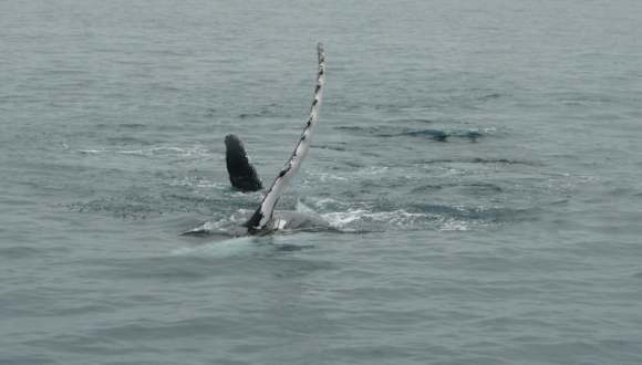 Wale direkt am Boot